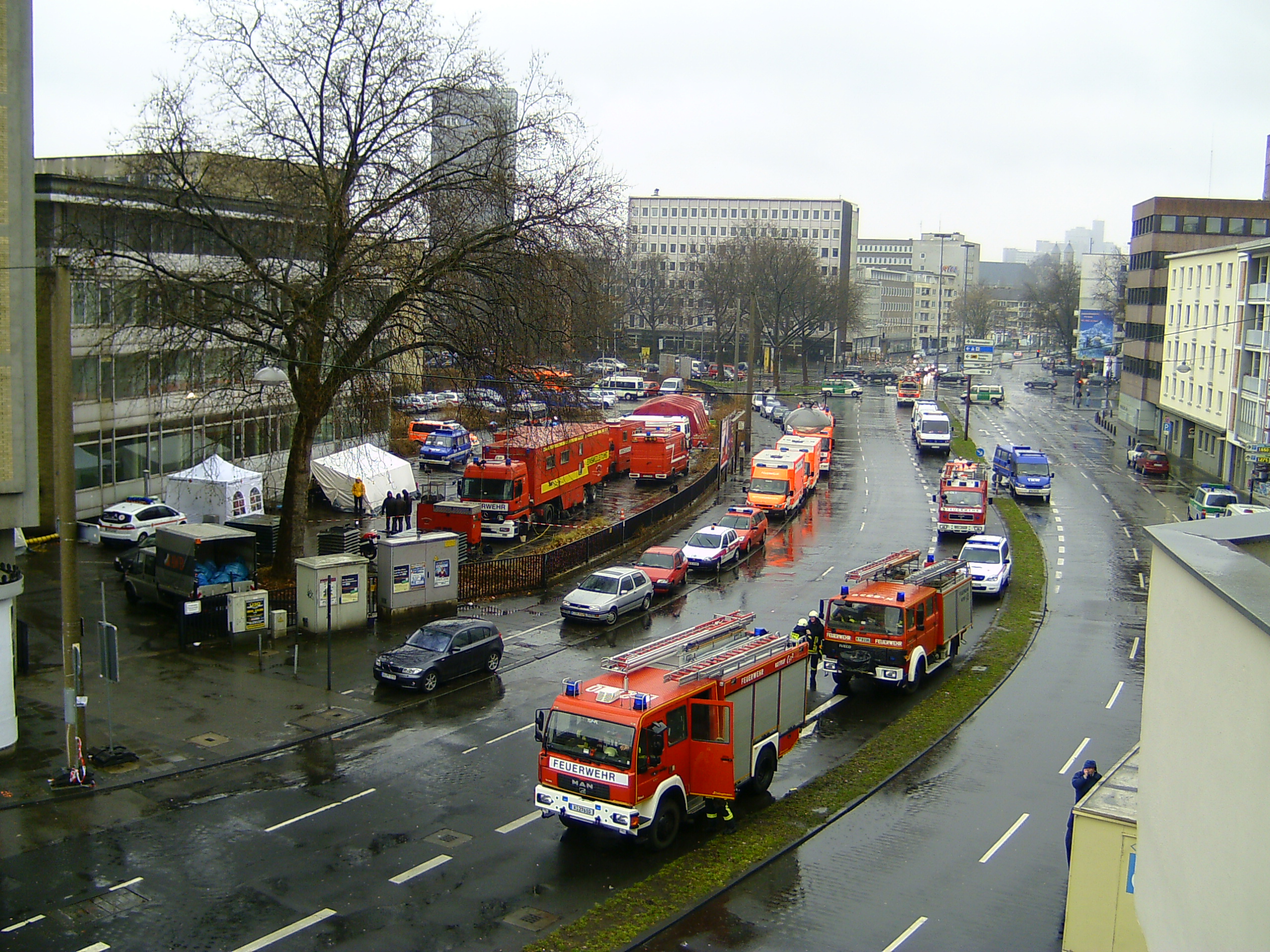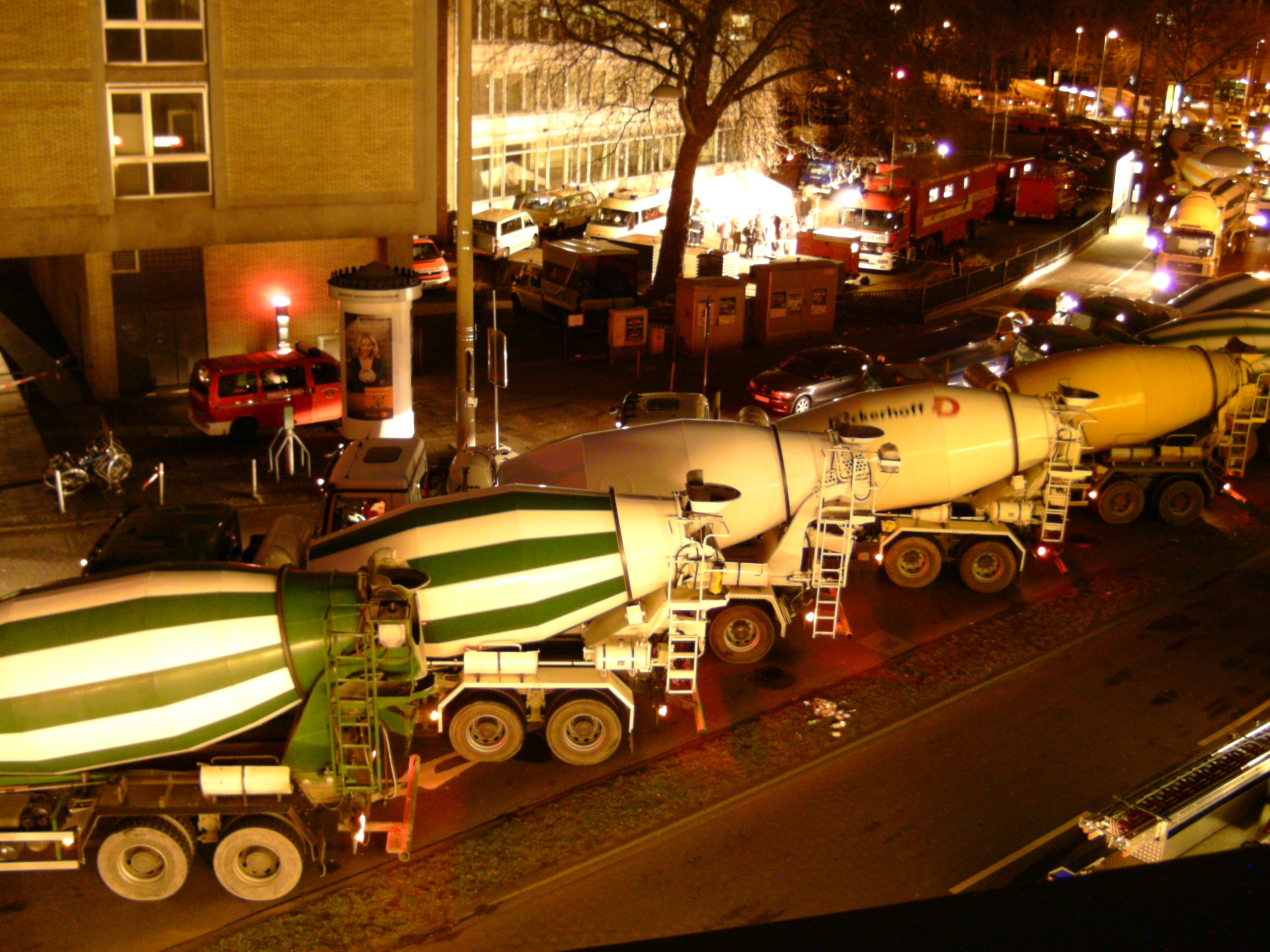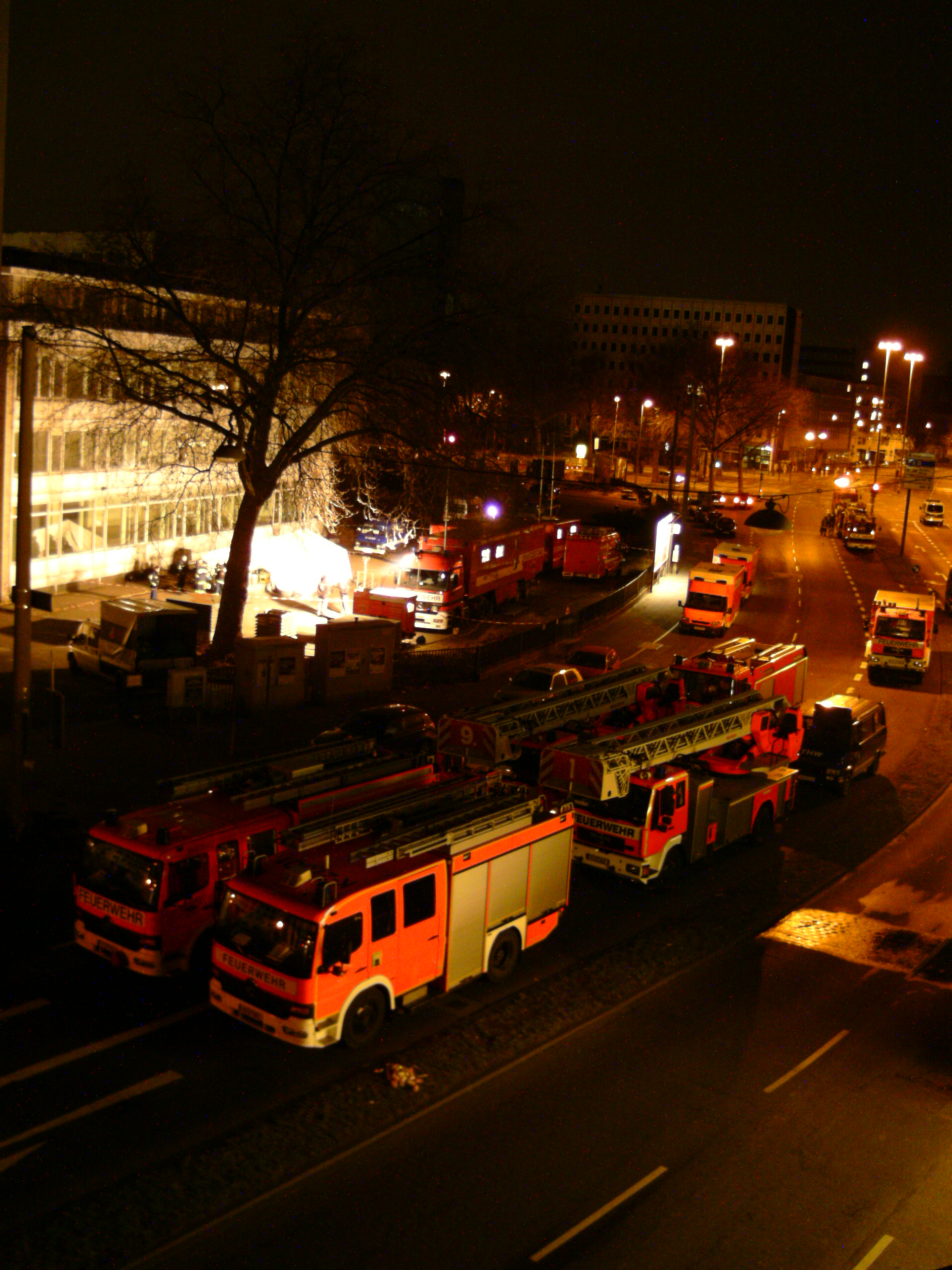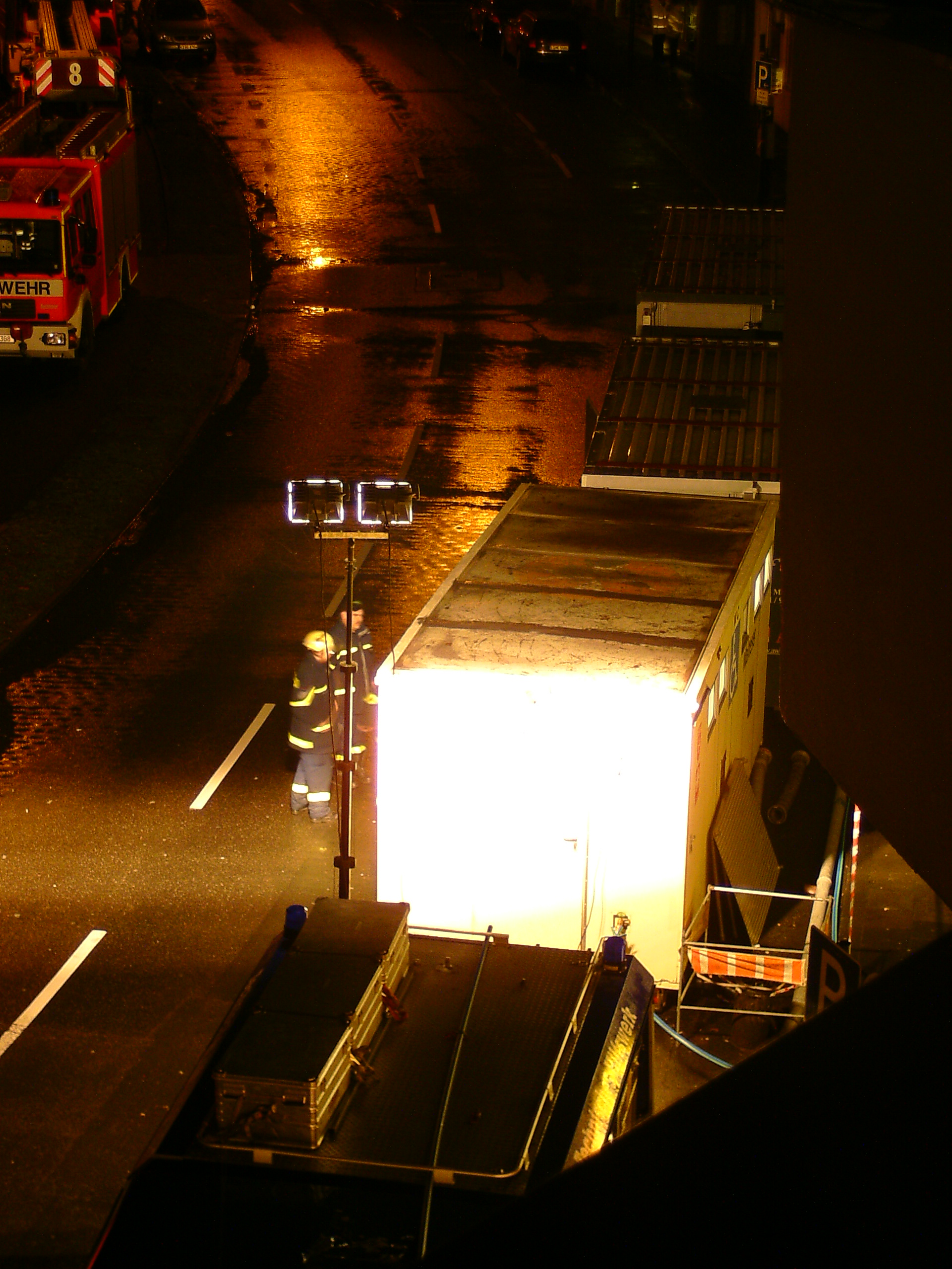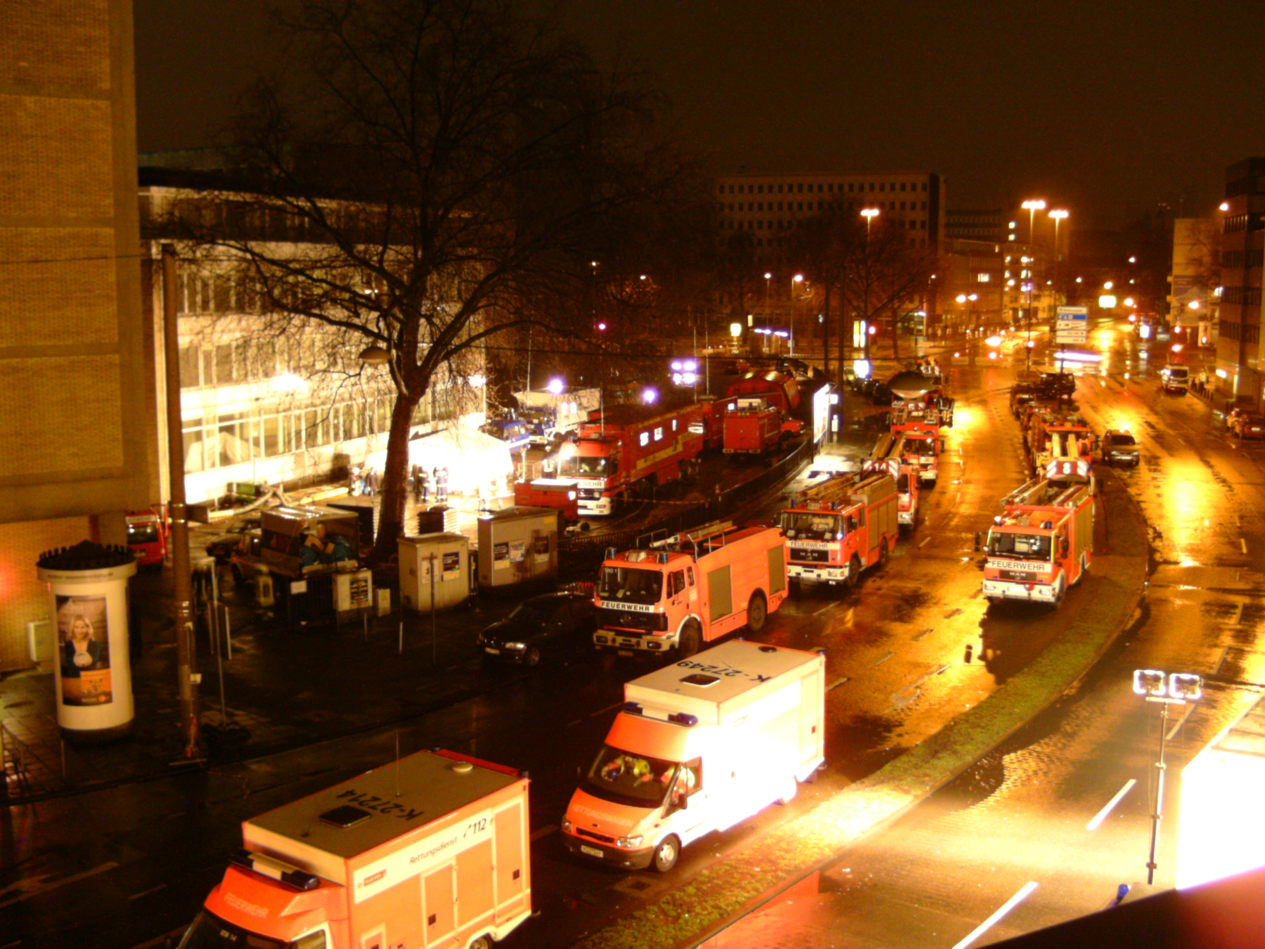4:00 Uhr - Parkplatz Waidmarkt und Feuerwehrfahrzeuge |