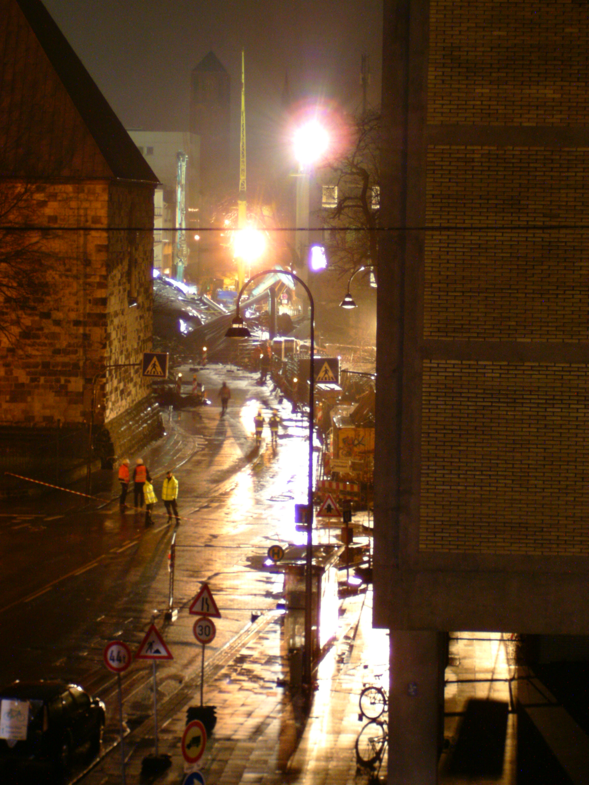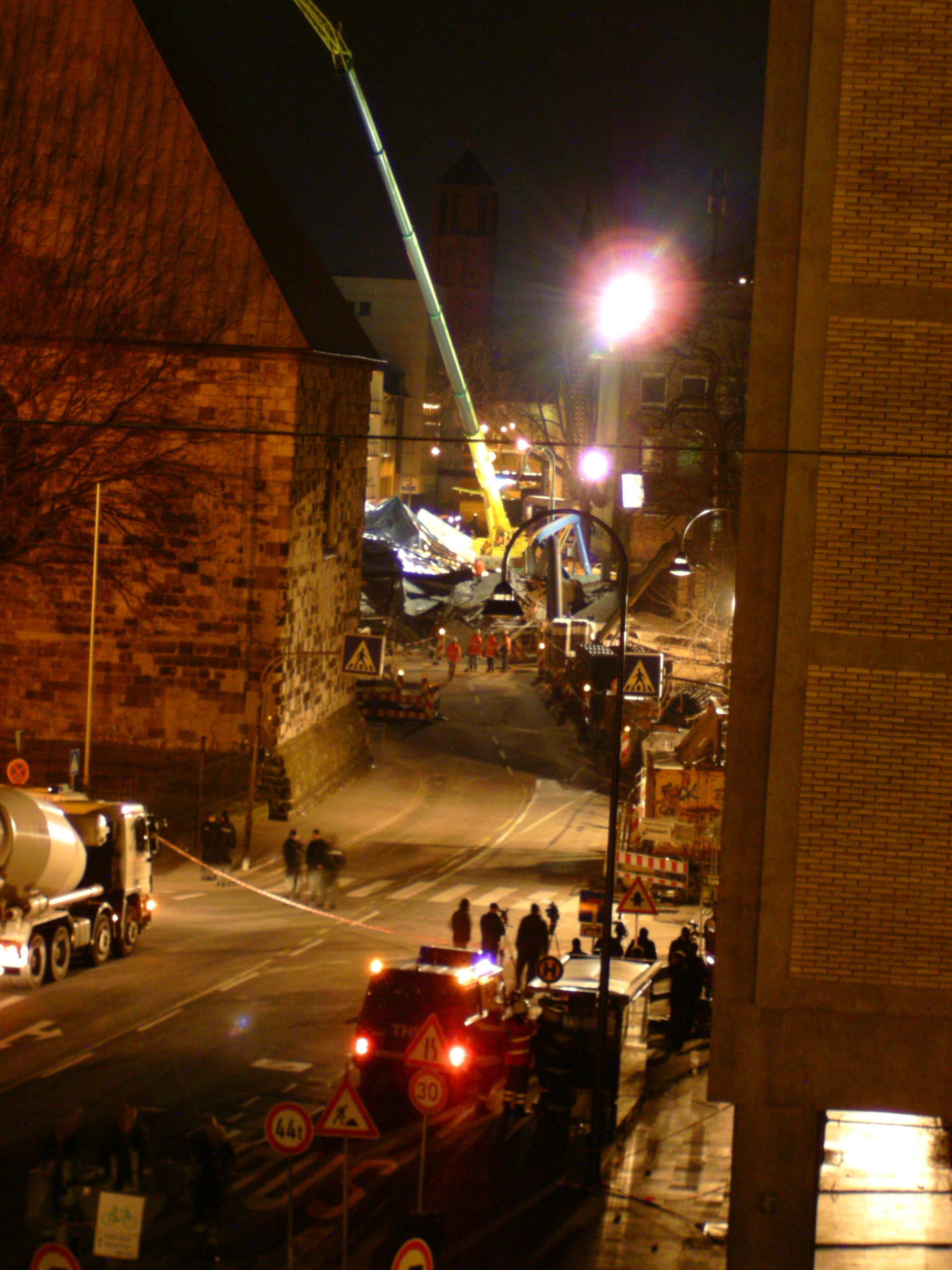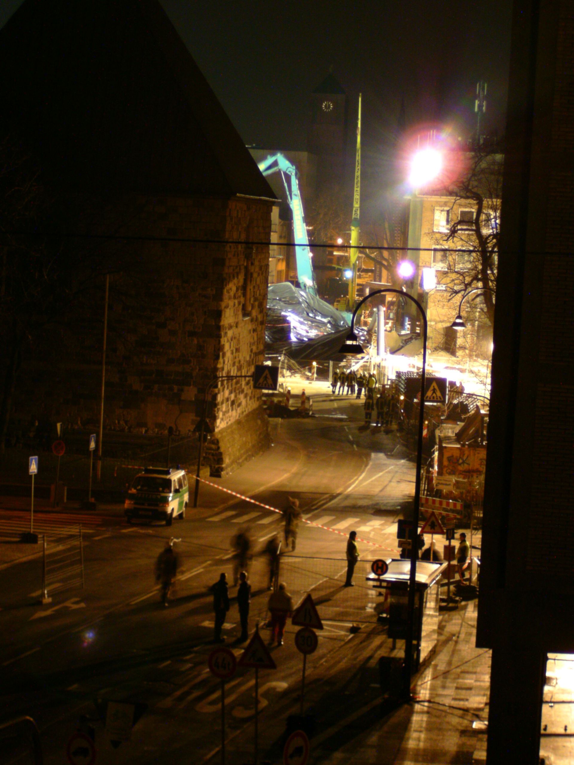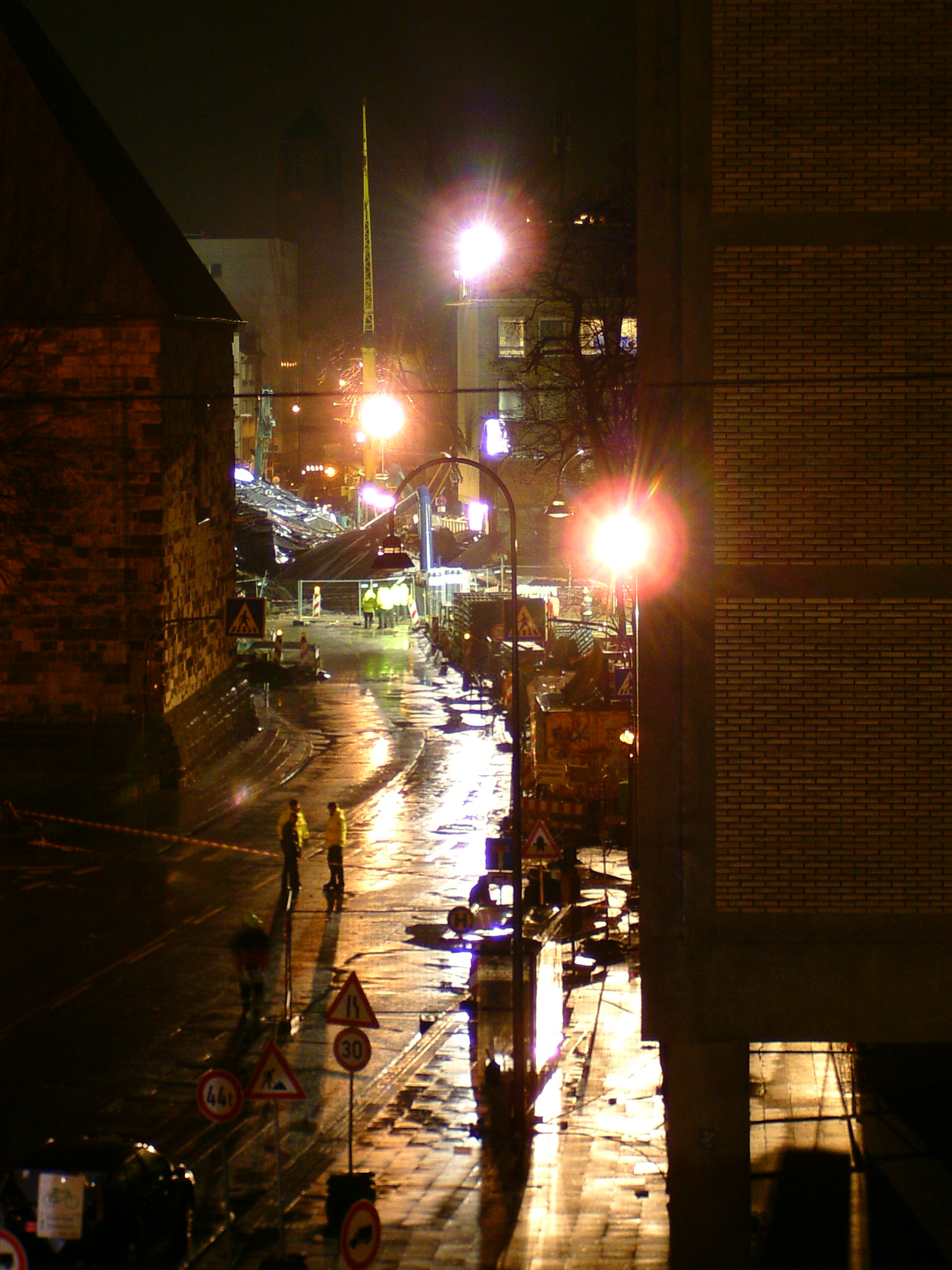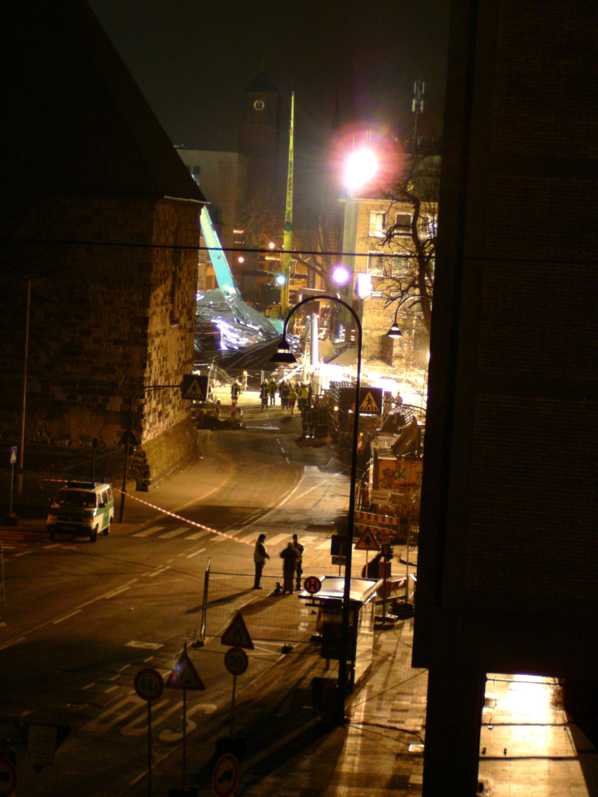 4:00 Uhr - Der blaue Bagger betätigt sich fleissig, wohl an den halb eingestürzten Nachbarhäusern |