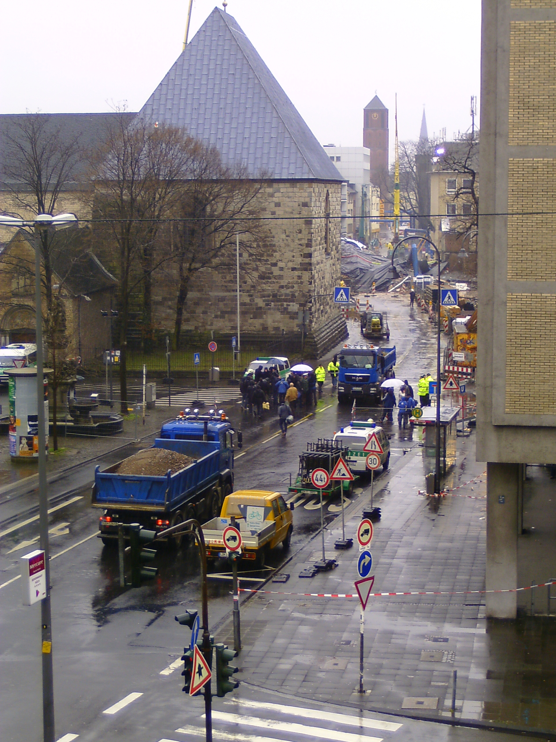 14:50 Uhr - Der blaue Laster biegt in den parallel laufenden Teil des Waidmarkts an, wo viel hinging, was dann in die Baugrube ging. |